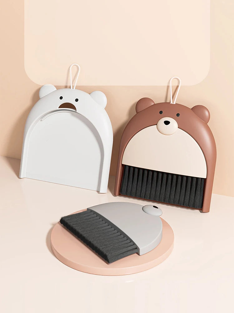 Mini Desktop Broom and Dustpan Set - Cute Cartoon Cleaning Tool for Keyboard & Desk